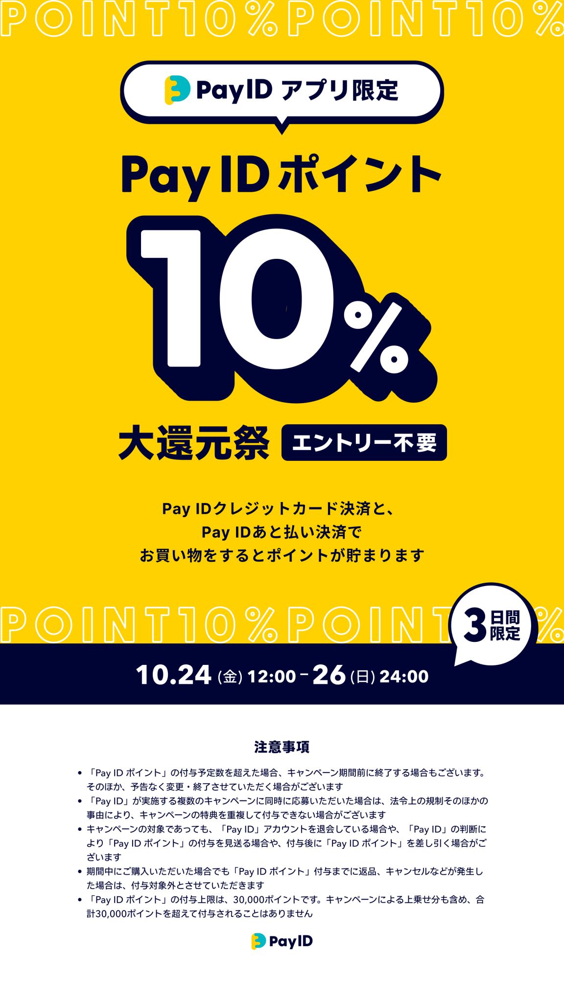 BASEのキャンペーン PayIDポイント10%大還元祭が26日24時まで開催中です。