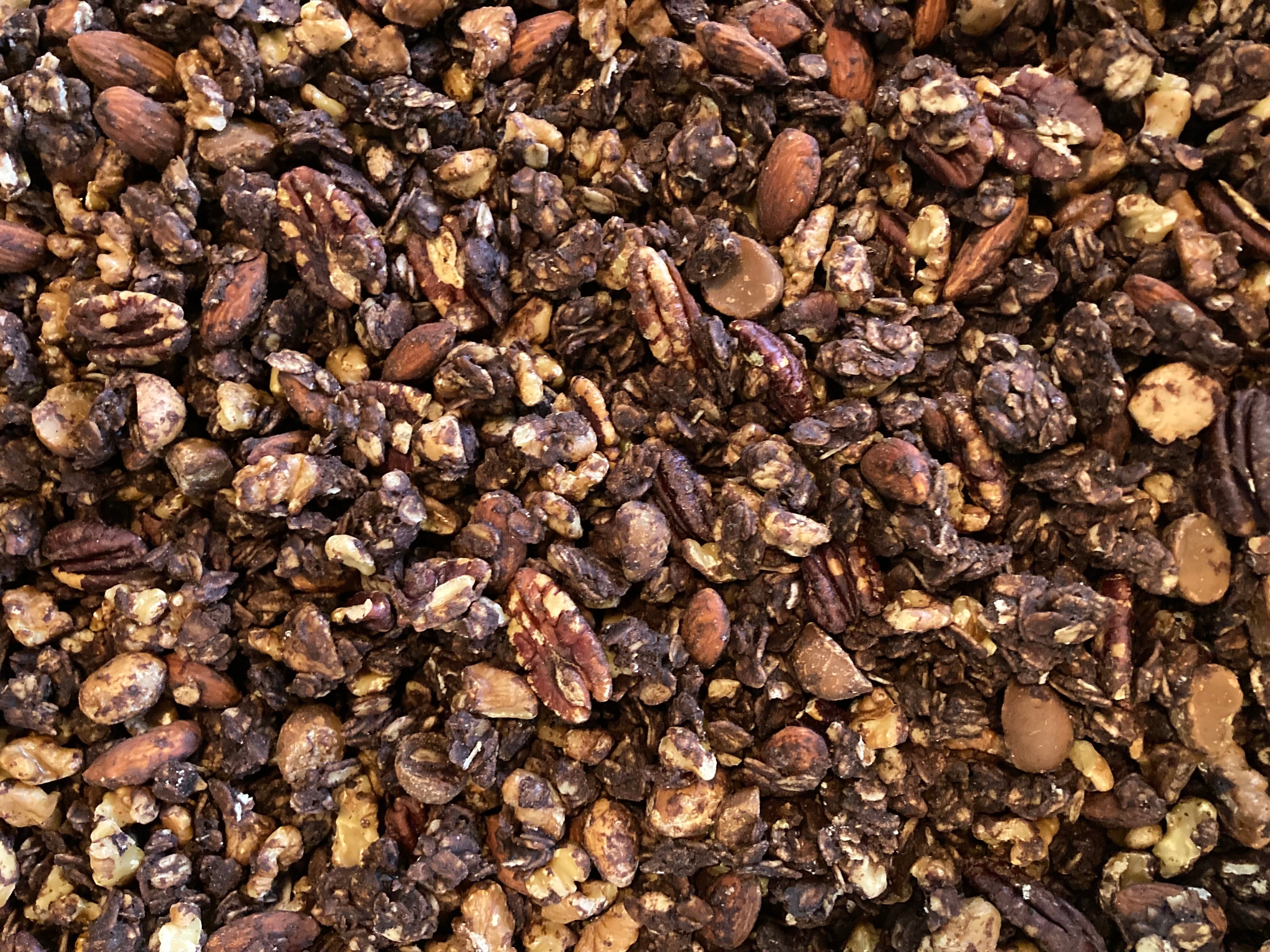 冬から春あたりにかけて店内で提供しているチョコレートパフェのために作ったグラノーラ。