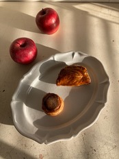 チョコのクレームフランジパーヌ(カスタード+アーモンドクリーム)にヴァローナのチョコを入れた、小さくてもチョコ感しっかりのパイです。